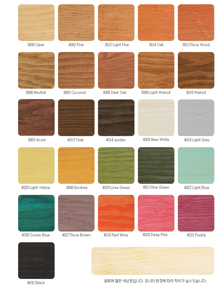 ¸ñÀç¼öÁ¾ ¹× »ö»ó°ú ³ª¹µ°á, Èí¼öÁ¤µµ¿Í µµÀåȽ¼ö µî¿¡ µû¶ó ¸¶°¨»ö»ó¿¡ Â÷À̰¡ ÀÖ½À´Ï´Ù.